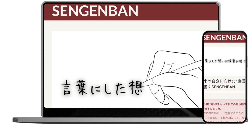 越谷市のせんげん台駅に宣言を可視化するSENGENBANを設置し、WEBサイトと連動させました。投稿された宣言をWEBから応援できる仕組みを制作しました。
