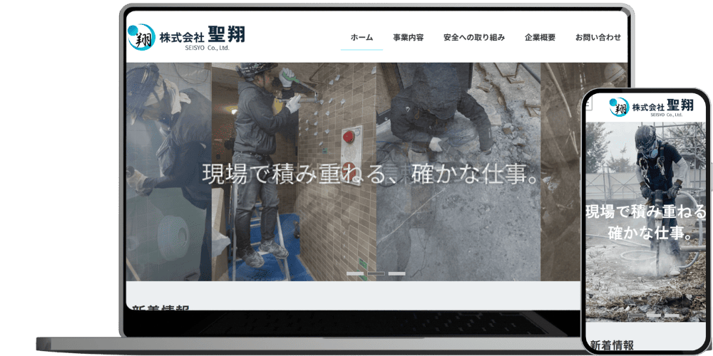 事業内容や施工実績を整理し、会社の信頼感が伝わる構成でサイトを設計しました。