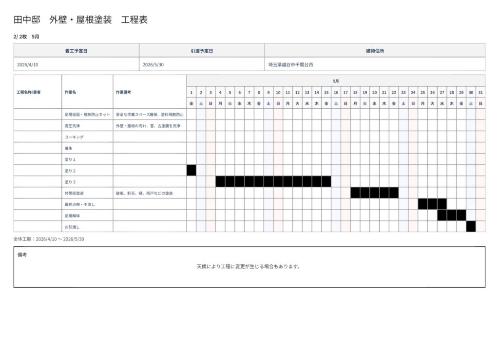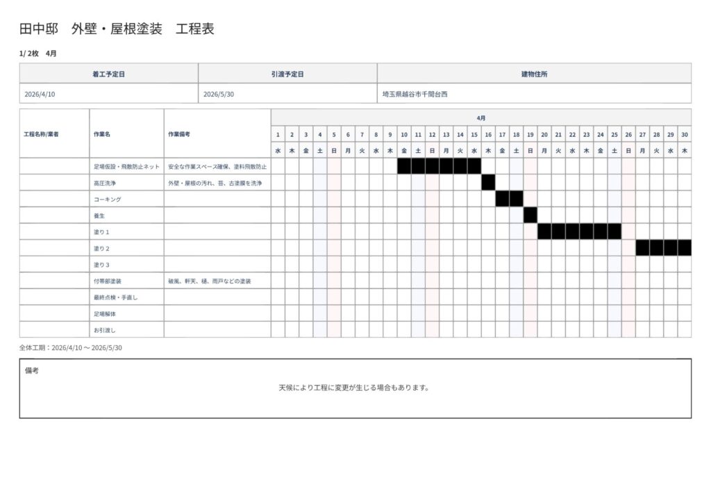 工期が31日以内の場合は1枚、31日以上の場合は月ごとにPDFが出力されます。